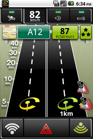 Pour remonter un radar mobile qui ne serait pas encore signalé par iCoyote, il vous suffit d’appuyer sur le bouton de droite ou de gauche en bas de l’écran.