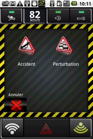 Toute remontée de ce type sera diffusée pendant une période d’une heure aux utilisateurs iCoyote roulant dans votre sens.
