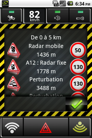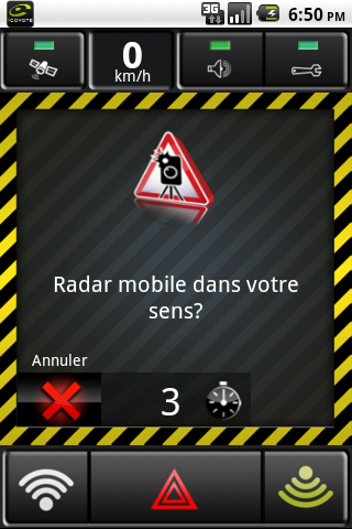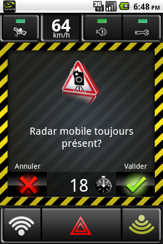 Lorsque vous passez à coté d’un radar mobile déjà signalé, il est important de confirmer sa présence, ou sa disparition, aux utilisateurs Coyote roulant derrière vous. Toute confirmation augmente la durée de signalement du radar d’une heure.