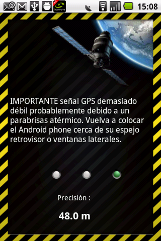En caso de mala recepción GPS por más de 2 minutos, le aparecerá la pantalla de abajo indicándole la precisión de la señal GPS.