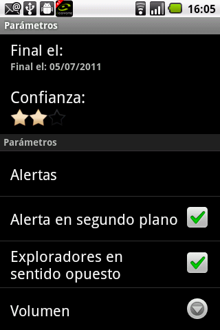 Por último, es posible cambiar la distancia con que sonará la alerta y el tipo (silencio, sonora o vocal) a través del menú “Configuración”