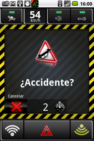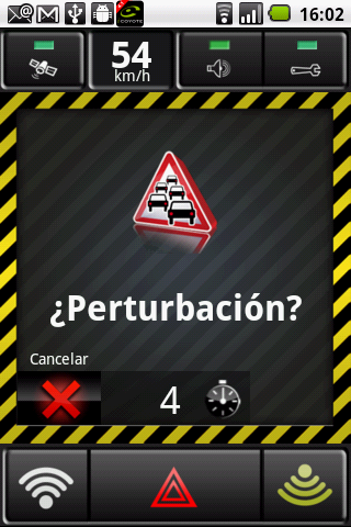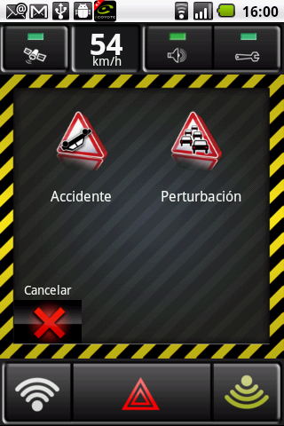 Para informar de un accidente o una retención simplemente una vez más, haga clic en el botón central de “aviso” en la parte inferior de la pantalla.