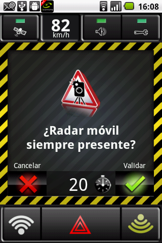 La pantalla de confirmación de radar móvil se mostrará durante 20 segundos tras informarle de la presencia del radar móvil.