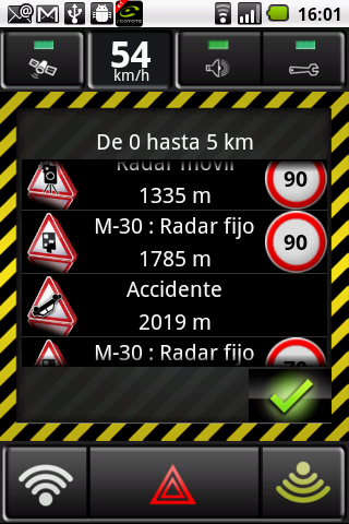 Novedad: Ahora puede ver un mapa que le proporciona la información del radar y los obstáculos de tráfico en un radio de 15 Km. alrededor de usted.
