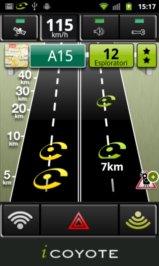 Gli esploratori vengono indicati con il logo Coyote. In verde, quelli nel tuo senso, in giallo quelli nel senso opposto.