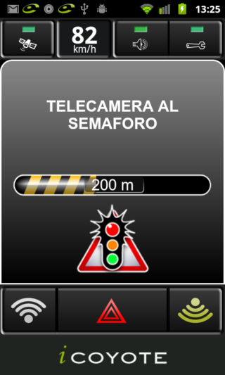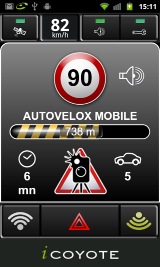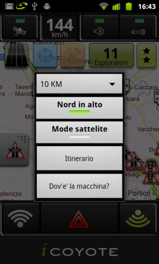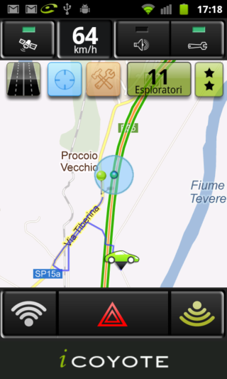 Per segnalare la presenza di un autovelox mobile non ancora segnalato da Coyote ti basterà schiacciare sull’ icona in basso a destra o a sinistra