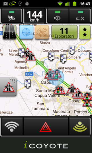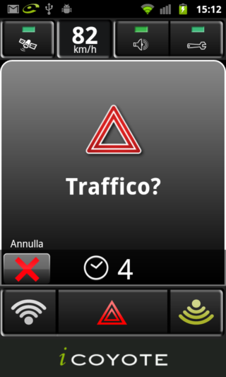 Tutte le informazioni relative al traffico e incidenti vengono mantenute nel sistema e inviate a tutti gli utenti iCoyote che passeranno su quel tratto per un’ora