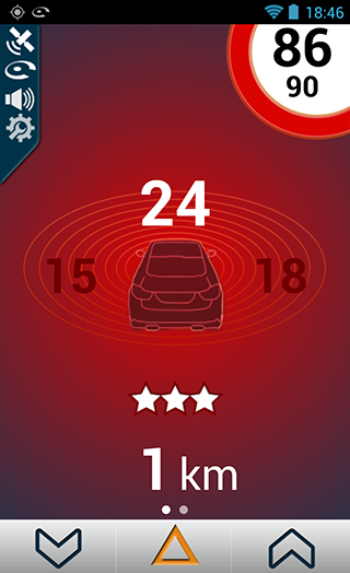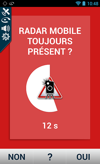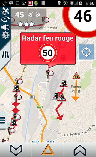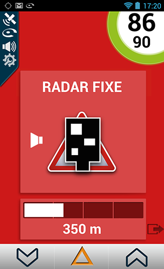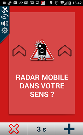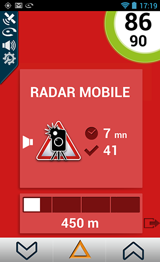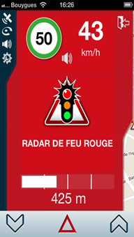A l’approche d’un radar mobile signalé par la Communauté, l’écran ci-dessous est affiché.