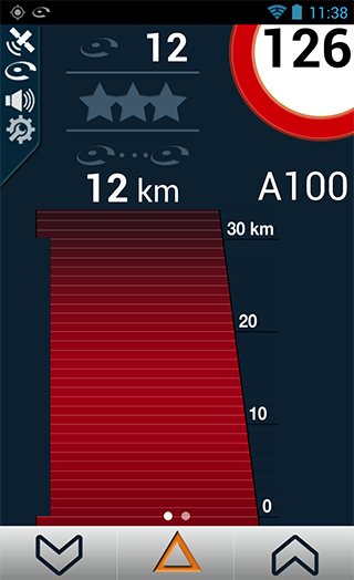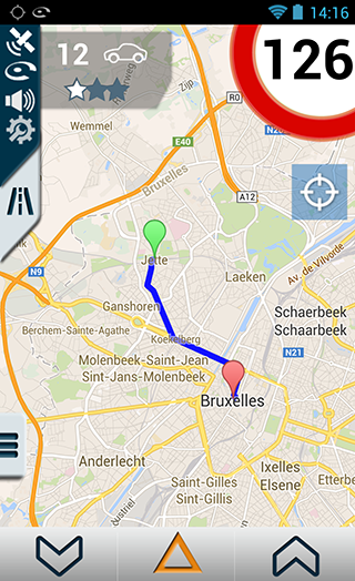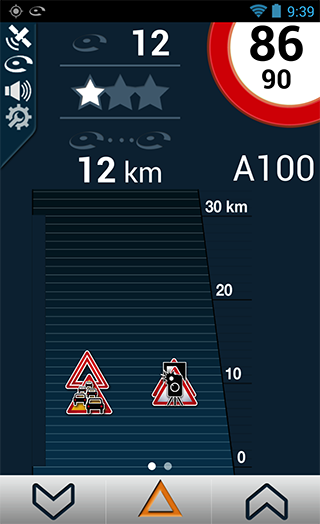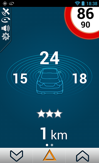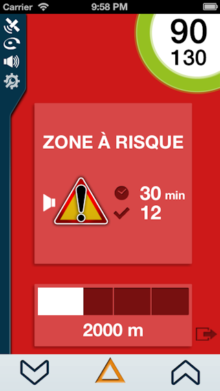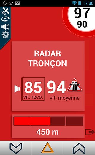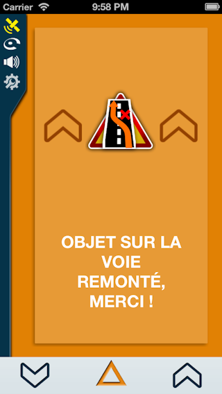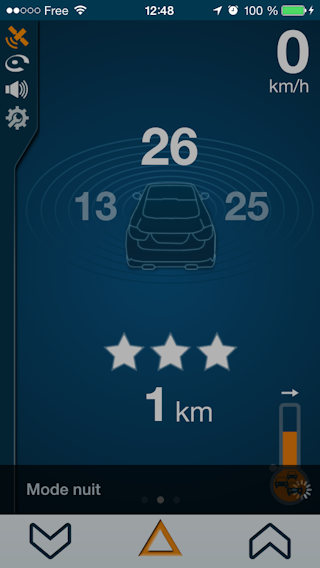 Pour remonter un radar mobile qui ne serait pas encore signalé par iCoyote, il vous suffit d’appuyer sur le bouton de droite ou de gauche en bas de l’écran.