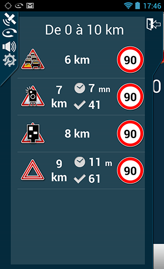 Nouveauté : pour les alertes "bouchons" envoyées automatiquement par le serveur, vous serez informé de la longueur du bouchon ainsi que de la durée à passer dans ce bouchon.