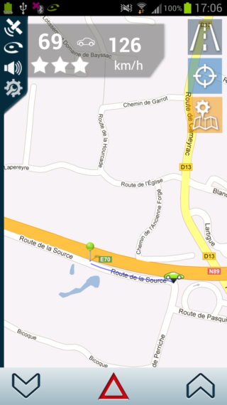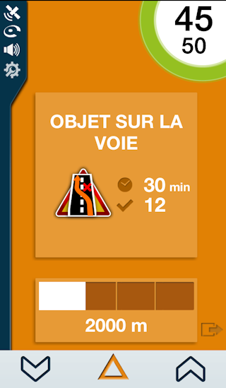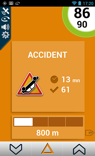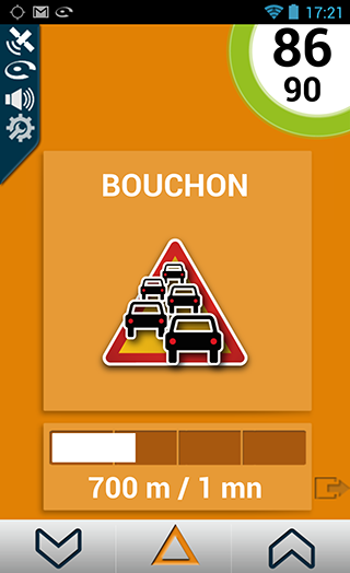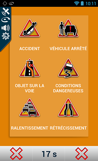 Pour signaler une perturbation routière, il vous suffit de cliquer sur le bouton central « warning » en bas de l’écran.