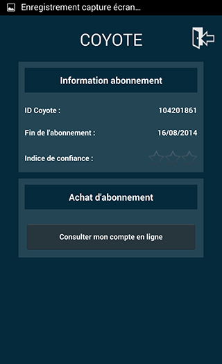- d'afficher la date de validité de votre abonnement Coyote