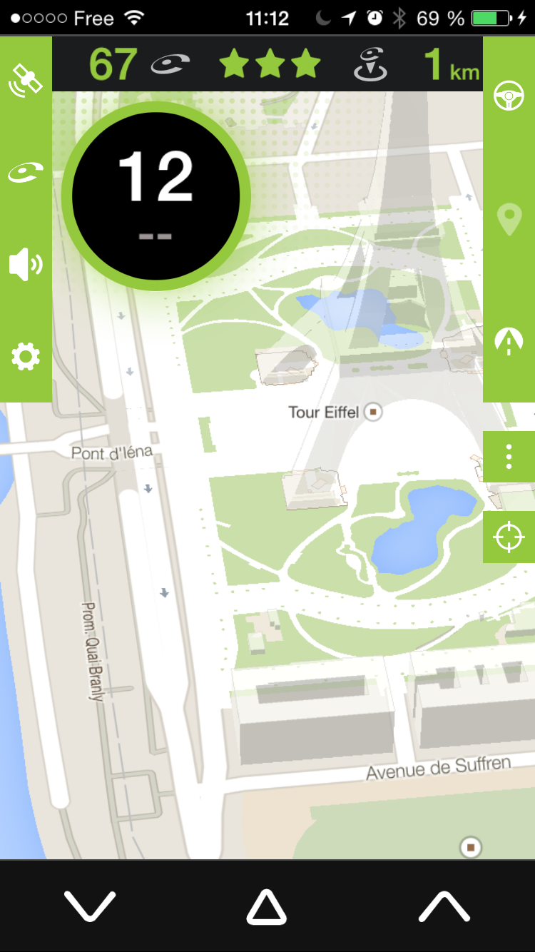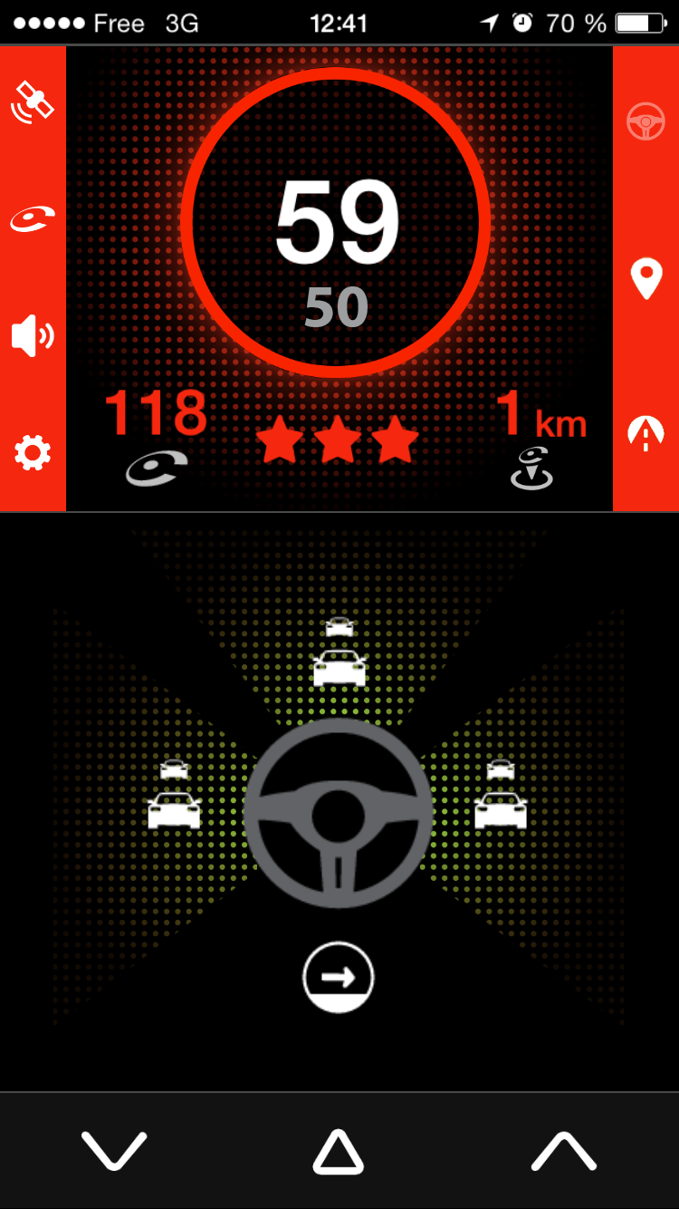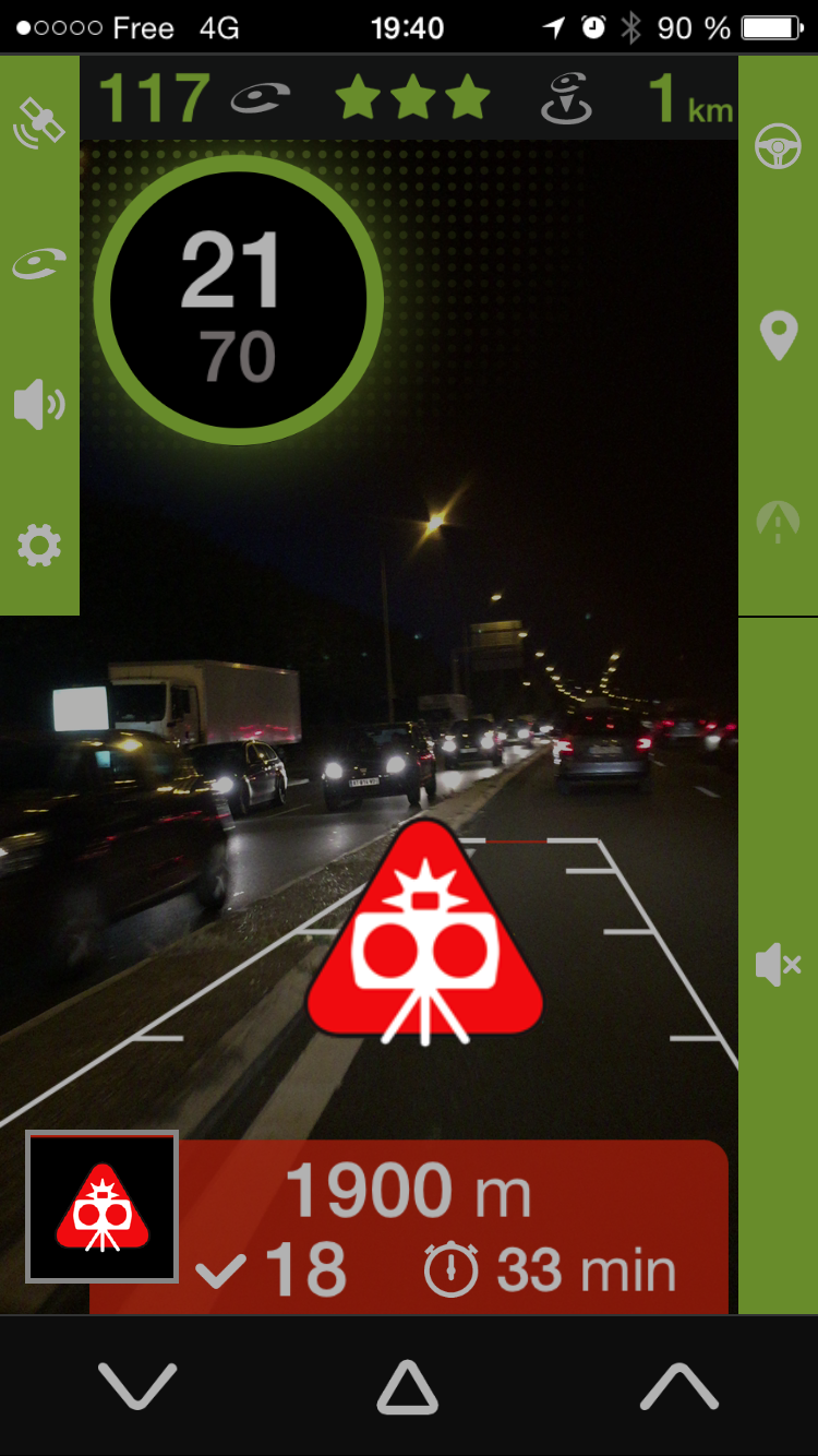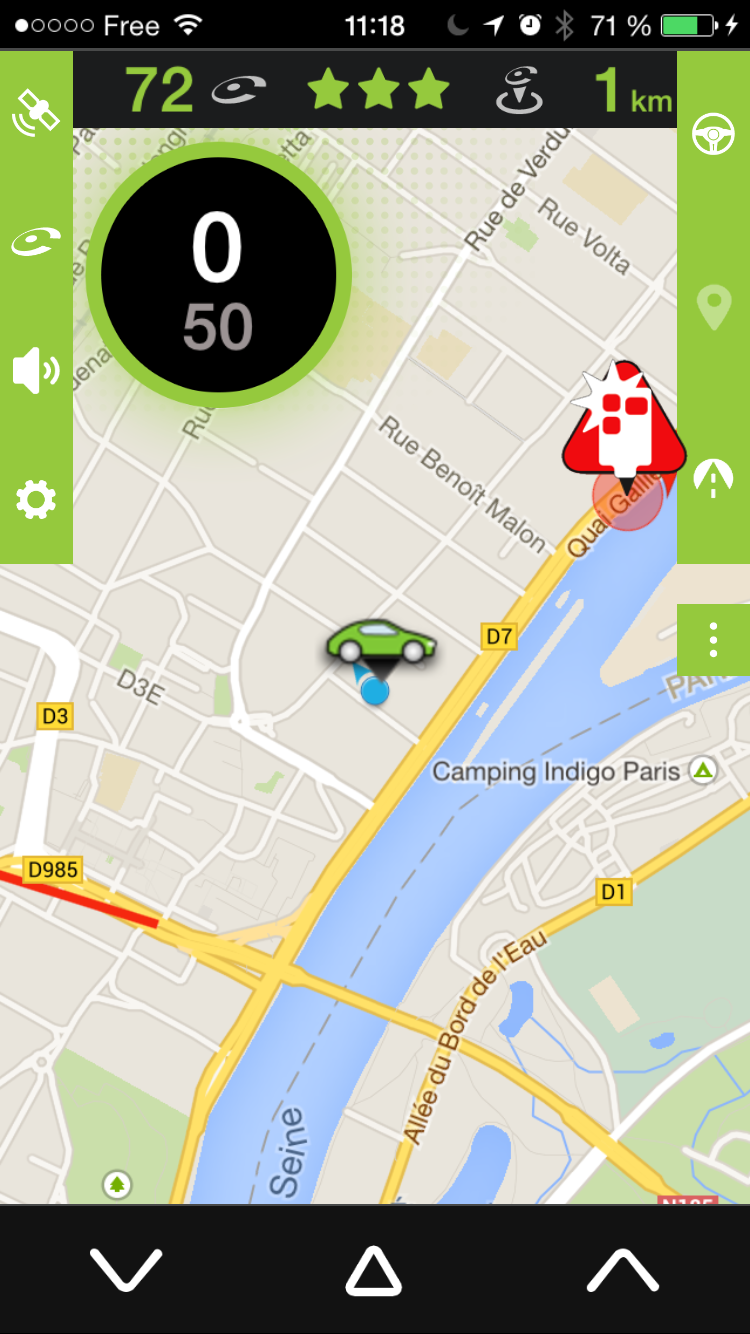 Pour remonter un radar mobile qui ne serait pas encore signalée par iCoyote, il vous suffit d’appuyer sur le bouton de droite ou de gauche en bas de l’écran.