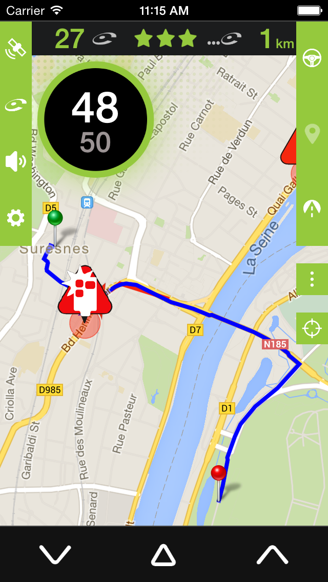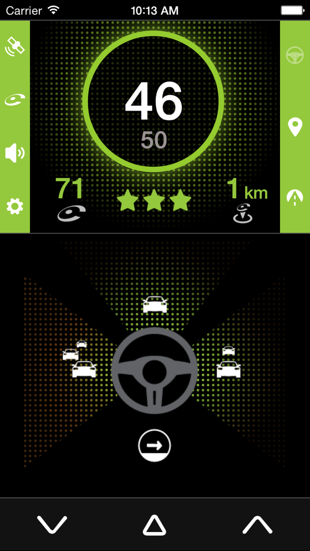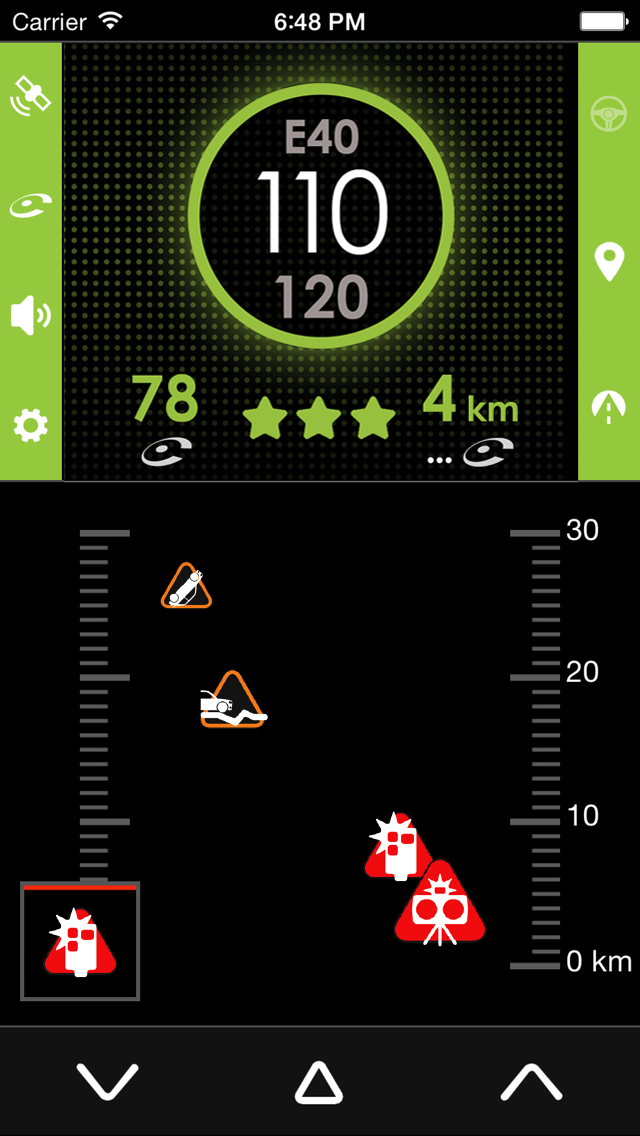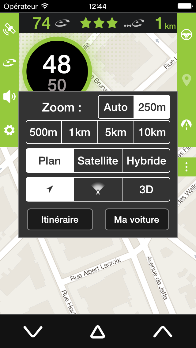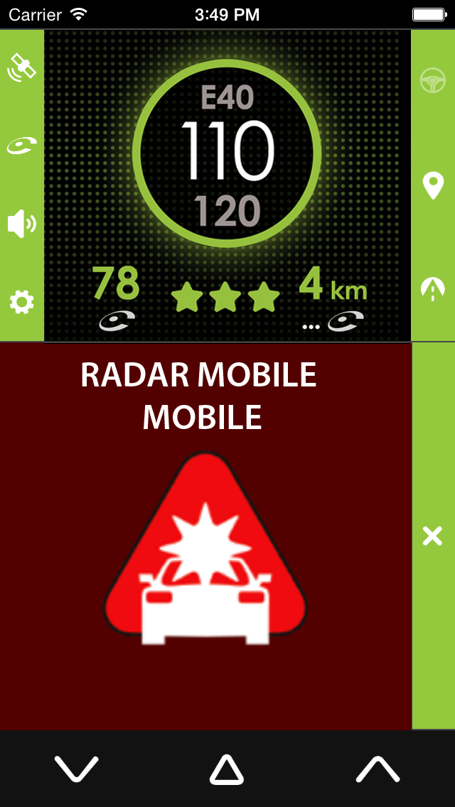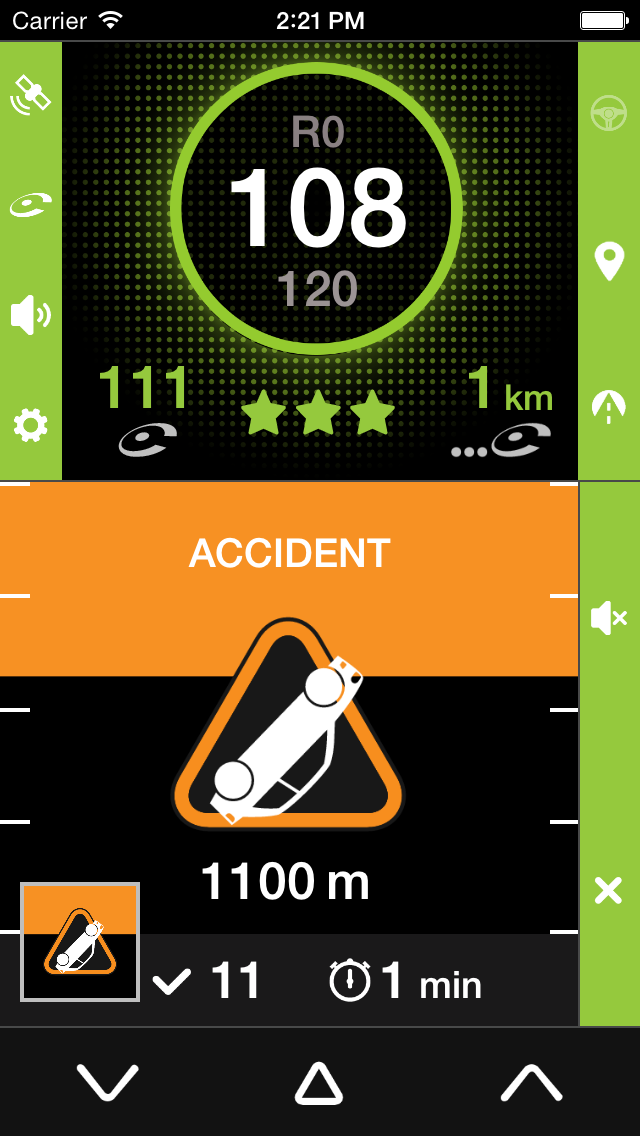 Pour remonter un radar mobile qui ne serait pas encore signalée par iCoyote, il vous suffit d’appuyer sur le bouton de droite ou de gauche en bas de l’écran.