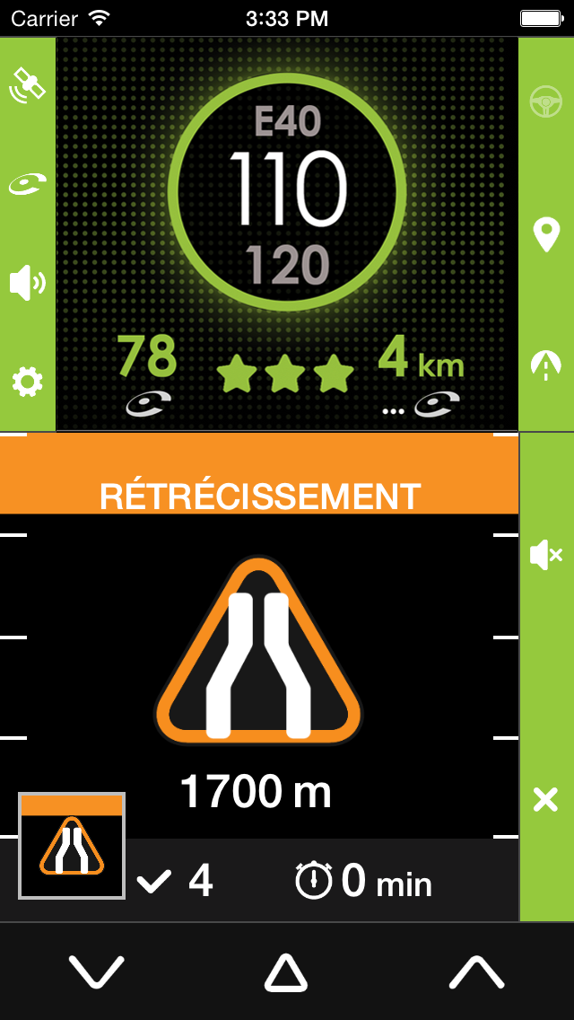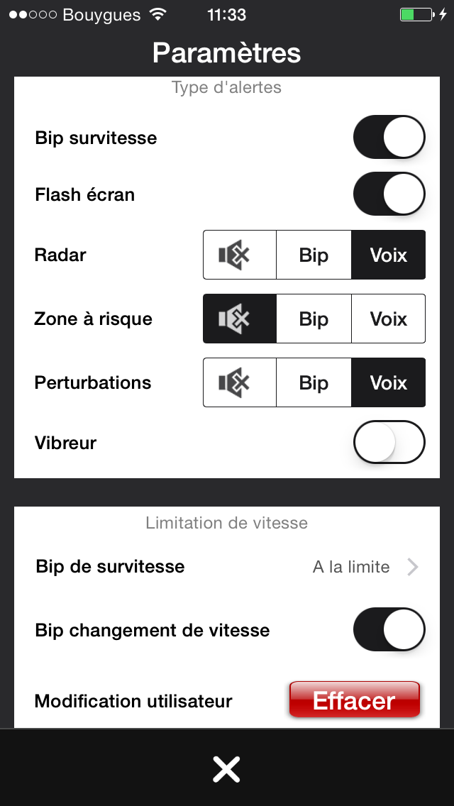 Comme pour un radar fixe, il est possible de réduire au silence l’alerte sonore ou de cacher visuellement l'alerte.