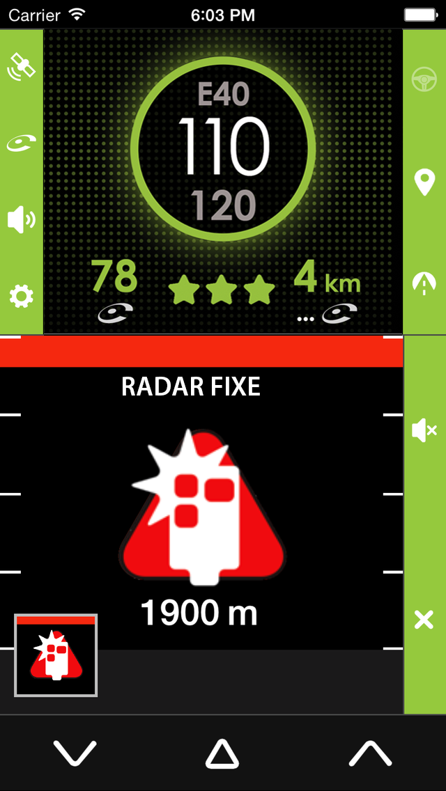 L’écran d’alerte permet de couper l’alerte sonore pour ce radar fixe en cliquant sur l'icône "haut-parleur".