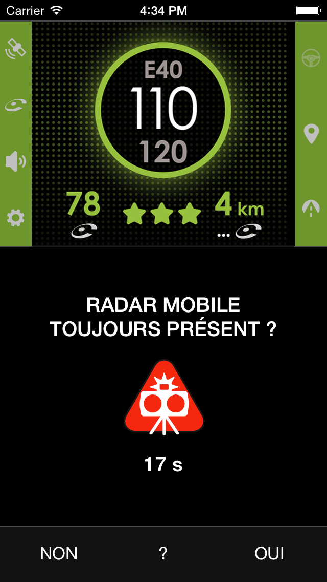 A l’approche d’un radar mobile signalé par la Communauté, l’écran ci-dessous est affiché.