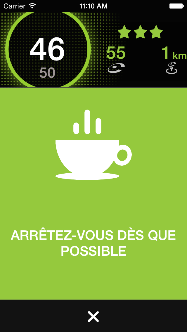 Lorsqu’un risque est identifié, COYOTE vous aide à évaluer si vous devez faire une pause, en vous indiquant certains des symptômes propres à la somnolence puis en vous demandant si vous vous sentez somnolent.
