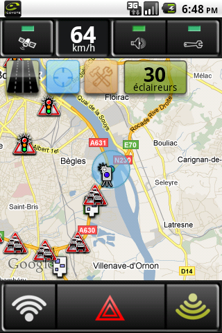 Cette carte vous permet par exemple d'anticiper et de contourner des axes trop fréquentés (les utilisateurs Coyote auront remonté des perturbations routières et celles-ci seront affichées très clairement sur la carte).