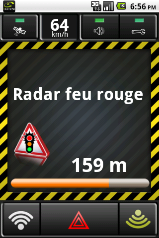 Pour remonter un radar mobile qui ne serait pas encore signalé par iCoyote, il vous suffit d’appuyer sur le bouton de droite ou de gauche en bas de l’écran.
